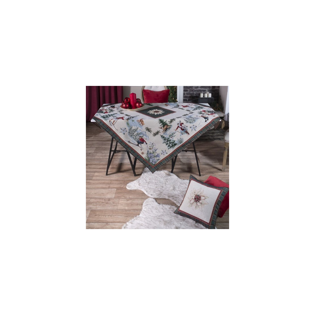 Θα θέλατε να περάσετε τις Χριστουγεννιάτικες διακοπές στις μαγευτικές Άλπεις; Φέρτε τες στον χώρο σας με τη Χριστουγεννιάτικη Σειρά Teoran Alps. Φέρει τυπωμένα λουλούδια, δέντρα και σκιέρ που απολαμβάνουν το χιόνι. Είναι ιδανική για εσάς που ψάχνετε κάτι όμορφο και οικονομικό που θα κάνει τον χώρο σας πιο γιορτινό. Είναι κατασκευασμένη από υψηλής ποιότητας ύφασμα, το οποίο την καθιστά απαλή στην υφή και ανθεκτική στη χρήση.