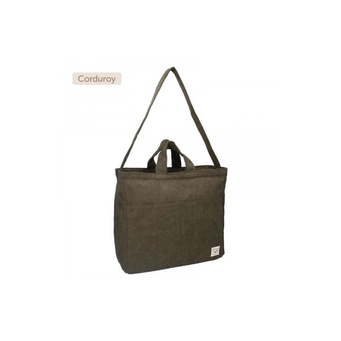 Αυτή η τσάντα για αλλαγή πάνας της Kidzroom από τη συλλογή Care Tenderness είναι ιδανική για εύκολη μεταφορά όλων των βρεφικών ειδών. Η τσάντα είναι κατασκευασμένη από κοτλέ ύφασμα σε πράσινο χρώμα. Επιπλέον, η τσάντα έχει μια ευρύχωρη κύρια θήκη που κλείνει και ανοίγει με φερμουάρ. Υπάρχει ένας ρυθμιζόμενος ιμάντας ώμου που μπορείτε να προσαρμόσετε εύκολα ανάλογα με τις ανάγκες σας. Ο ιμάντας ώμου μπορεί επίσης να κρεμαστεί εύκολα και σε ένα καρότσι. Υπάρχουν επίσης και δύο χερούλια για μεταφορά με τα χέρια. Η τσάντα έχει επίσης έξτρα τσέπες στο μπροστινό και στο πίσω μέρος που κλείνουν και ανοίγουν με τράβηγμα ή φερμουάρ. Η τσάντα αλλαξιέρας περιλαμβάνει επίσης ασορτί χαλάκι αλλαξιέρας με διαστάσεις 64 x 32 cm το οποίο έχει μια εύκολα αφαιρούμενη εσωτερική πλευρά.