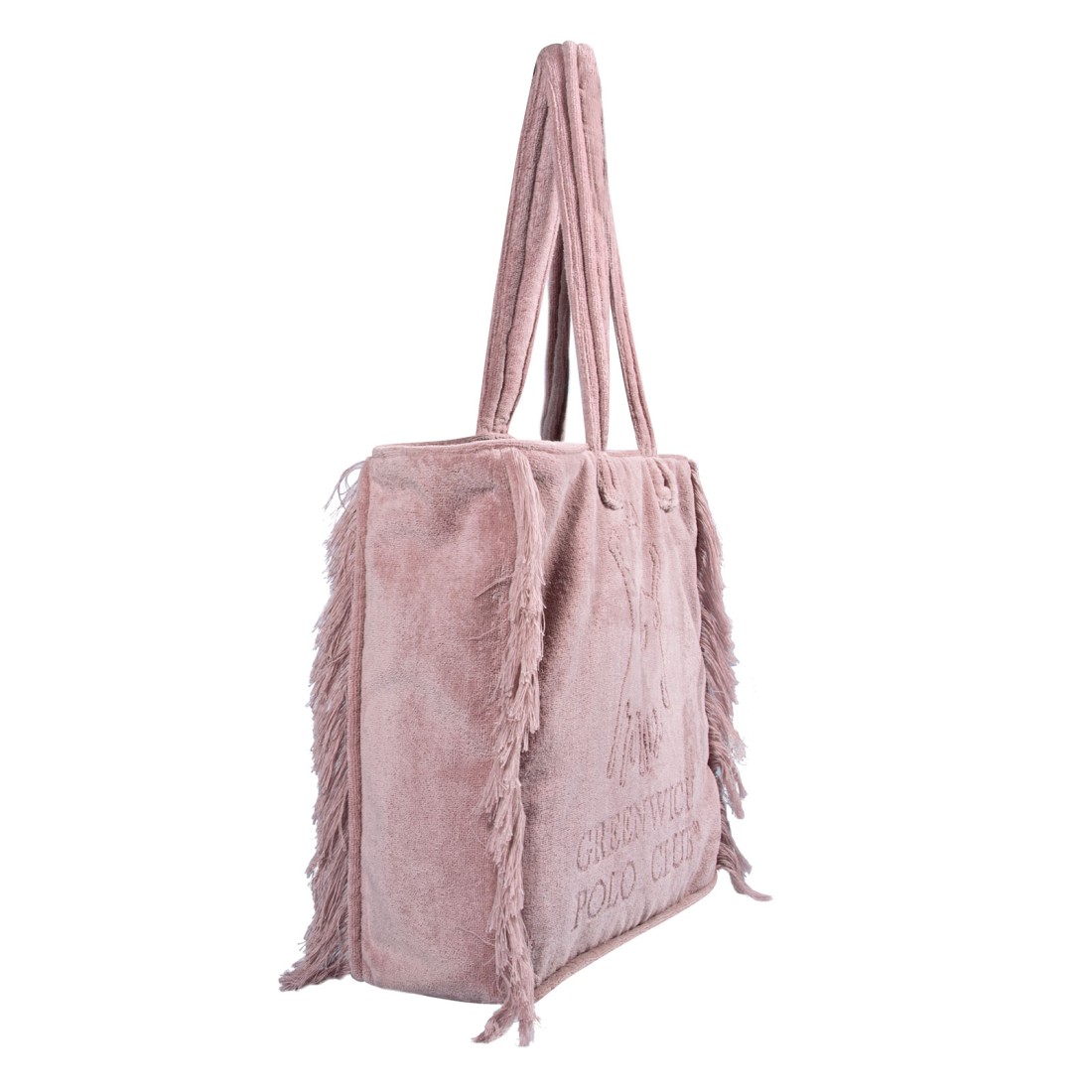 Τσάντα θαλάσσης με κρόσια Greenwich Polo Club σε διάσταση 42X45εκ. Είναι υποαλλεργική, απορροφητική και ανθεκτική στη χρήση. Η σύνθεσή της είναι από 100% βαμβάκι σε ύφανση jacquard και βάρος 400gr/m2. Επιλέξτε τσάντες θαλάσσης Greenwich Polo Club σε μοντέρνα σχέδια και χρώματα για τις εμφανίσεις σας στην παραλία.
