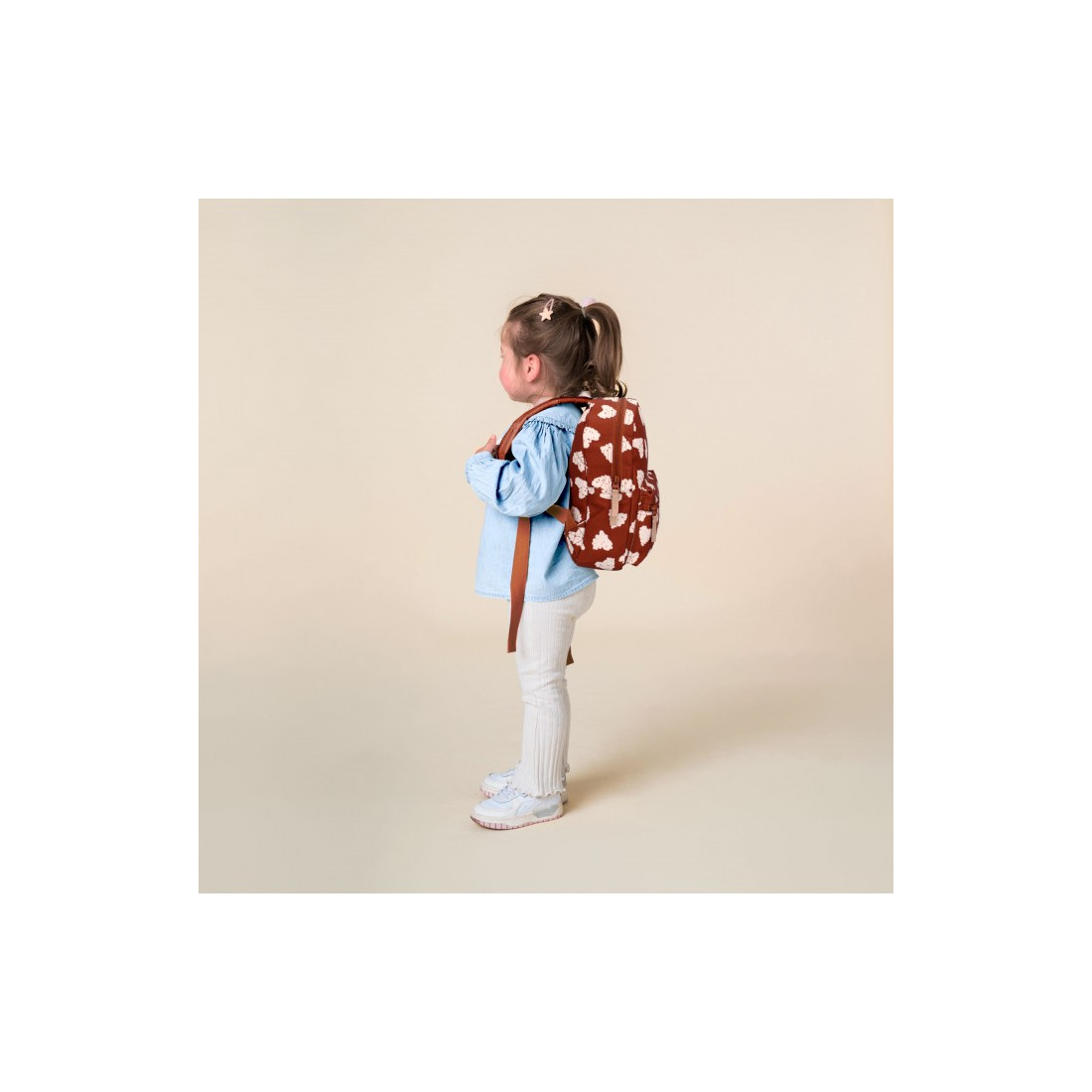 Αυτό το καφέ σακίδιο πλάτης από τη συλλογή Adore More είναι τυπωμένο με ένα χαριτωμένο στάμπα καρδιάς. Το σακίδιο έχει μια εύχρηστη μπροστινή τσέπη με φερμουάρ με χώρο για μικρότερα αντικείμενα που πρέπει να έχετε μαζί σας. Η μεγάλη κύρια θήκη έχει ένα εύχρηστο διπλό φερμουάρ και προσφέρει χώρο για ένα κουτί μεσημεριανού γεύματος ή επιπλέον σετ ρούχων, για παράδειγμα. Βολικό όταν το παιδί σας παίρνει το σακίδιο στο σχολείο. Στο εσωτερικό του σακιδίου υπάρχει φερμουάρ για μικροαντικείμενα. Η τσάντα έχει επίσης ετικέτα ονόματος στο εσωτερικό, ώστε όλοι να γνωρίζουν σε ποιον ανήκει αυτό το χαριτωμένο σακίδιο Kidzroom. Επιπλέον, διαθέτει ελαστική τσέπη για μπουκάλι για να μην γλιστράει. Αυτό το σακίδιο πλάτης έχει επένδυση για καλύτερη ποιότητα και μεγαλύτερη αντοχή. Το σακίδιο μπορεί να μεταφερθεί στη θηλιά στο πάνω μέρος ή στο πίσω μέρος με τους ρυθμιζόμενους ιμάντες ώμου.