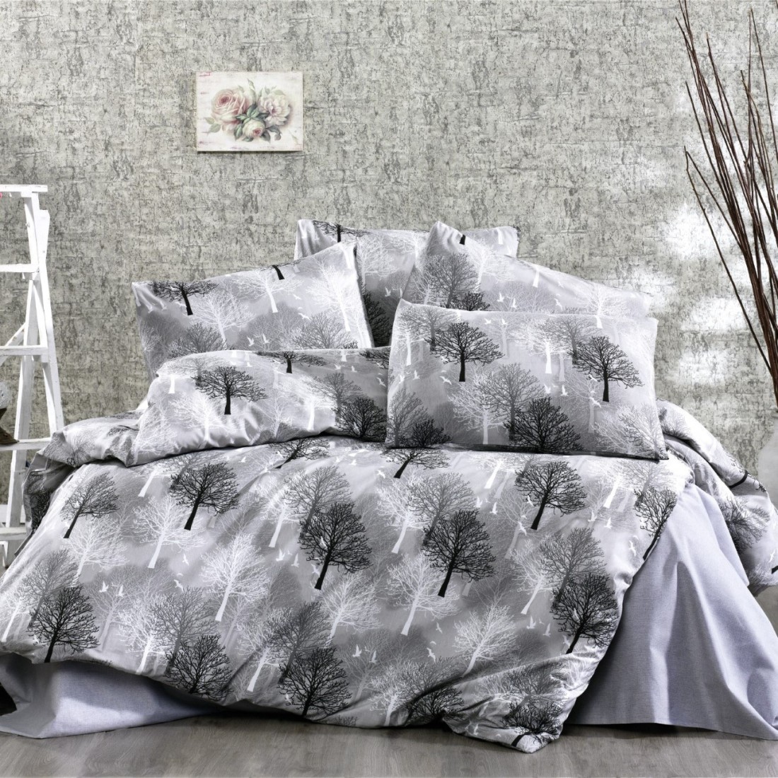 Κατασκευασμένo στην πάνω πλευρά από ύφασμα εμπριμέ σύνθεσης 70% βαμβάκι - 30% Polyester, 144 κλωστών, σε χαρούμενα και απαλά χρώματα, με μοντέρνες και σύγχρονες παραστάσεις και στη κάτω πλευρά από μονόχρωμο Grey Shadow κομποζέ ύφασμα της ίδιας σύνθεσης.