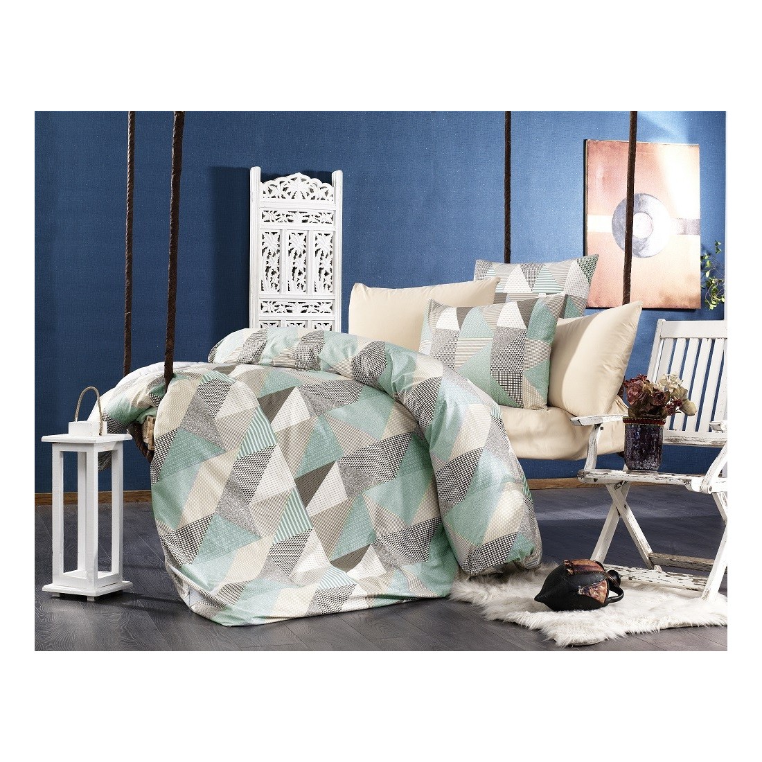 Σετ Σεντόνια Υπέρδιπλα 4 Τεμαχίων Dimcol Geometrical 330 Green-Beige.