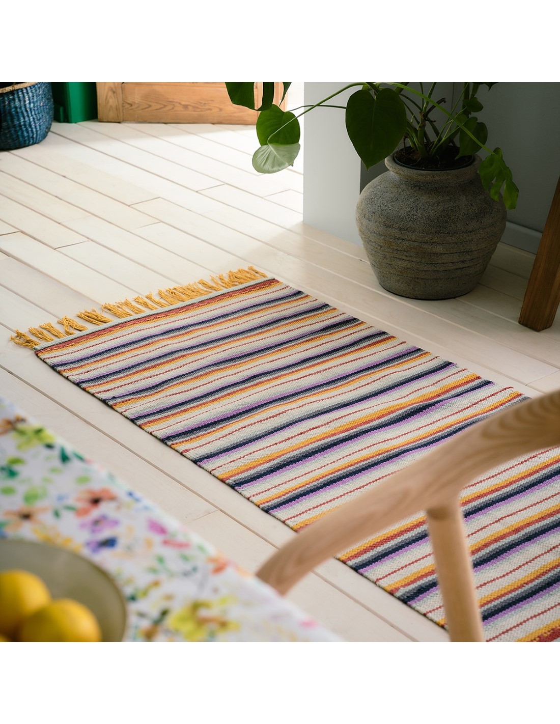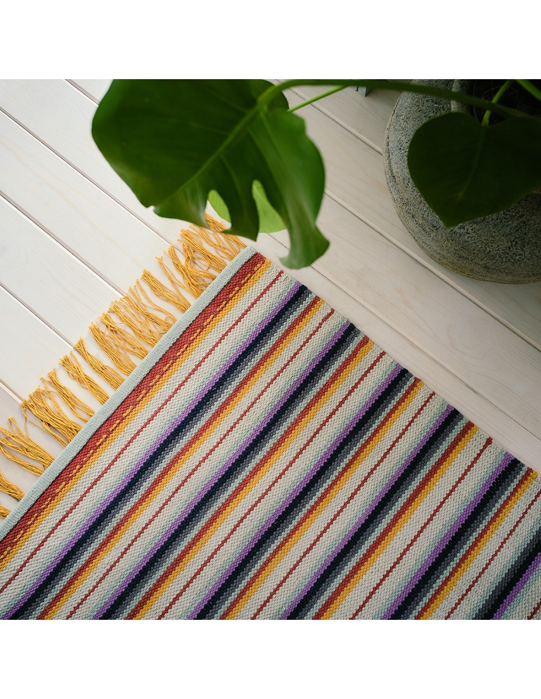 Υφαντό χαλάκι από βαμβακερά νήματα και κροσσάκι στις δύο πλευρές.