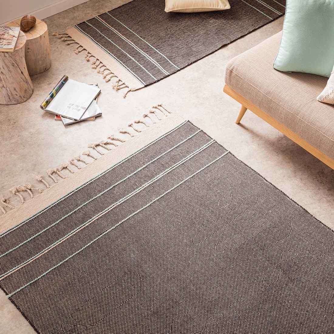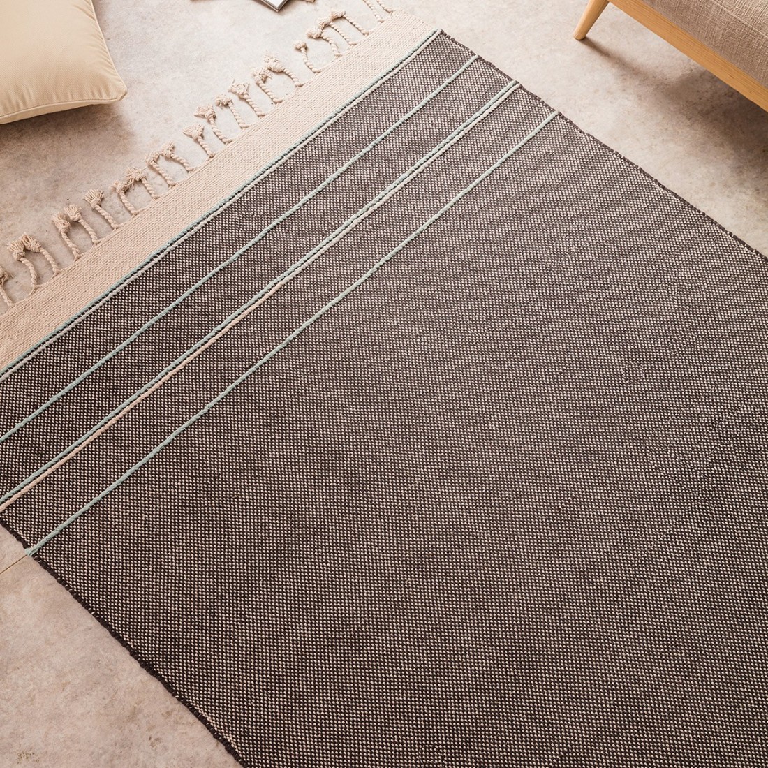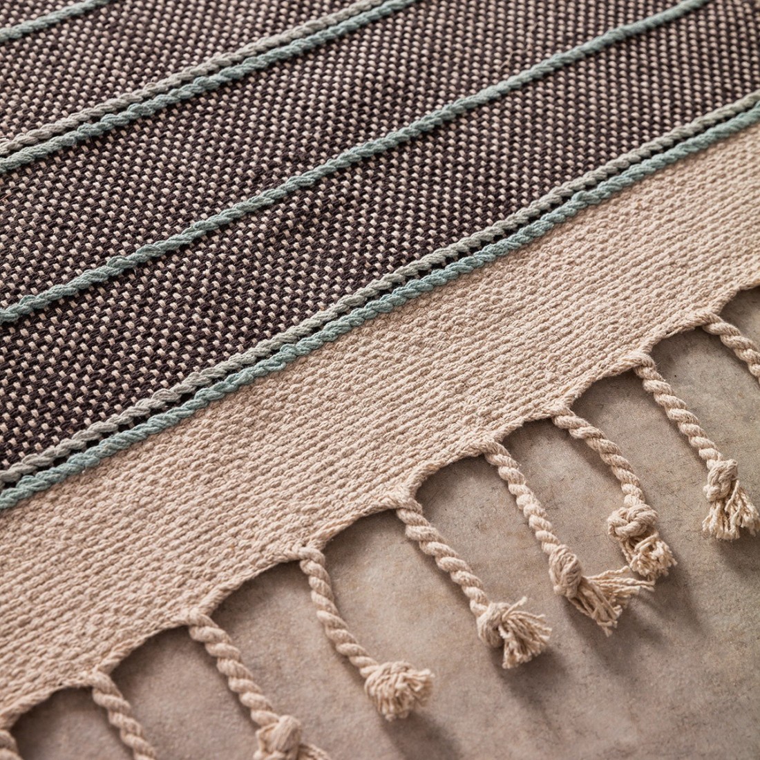 Μονόχρωμο με κροσάκι και χρωματιστά νήματα στις δύο πλευρές.