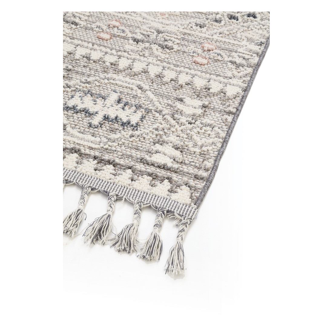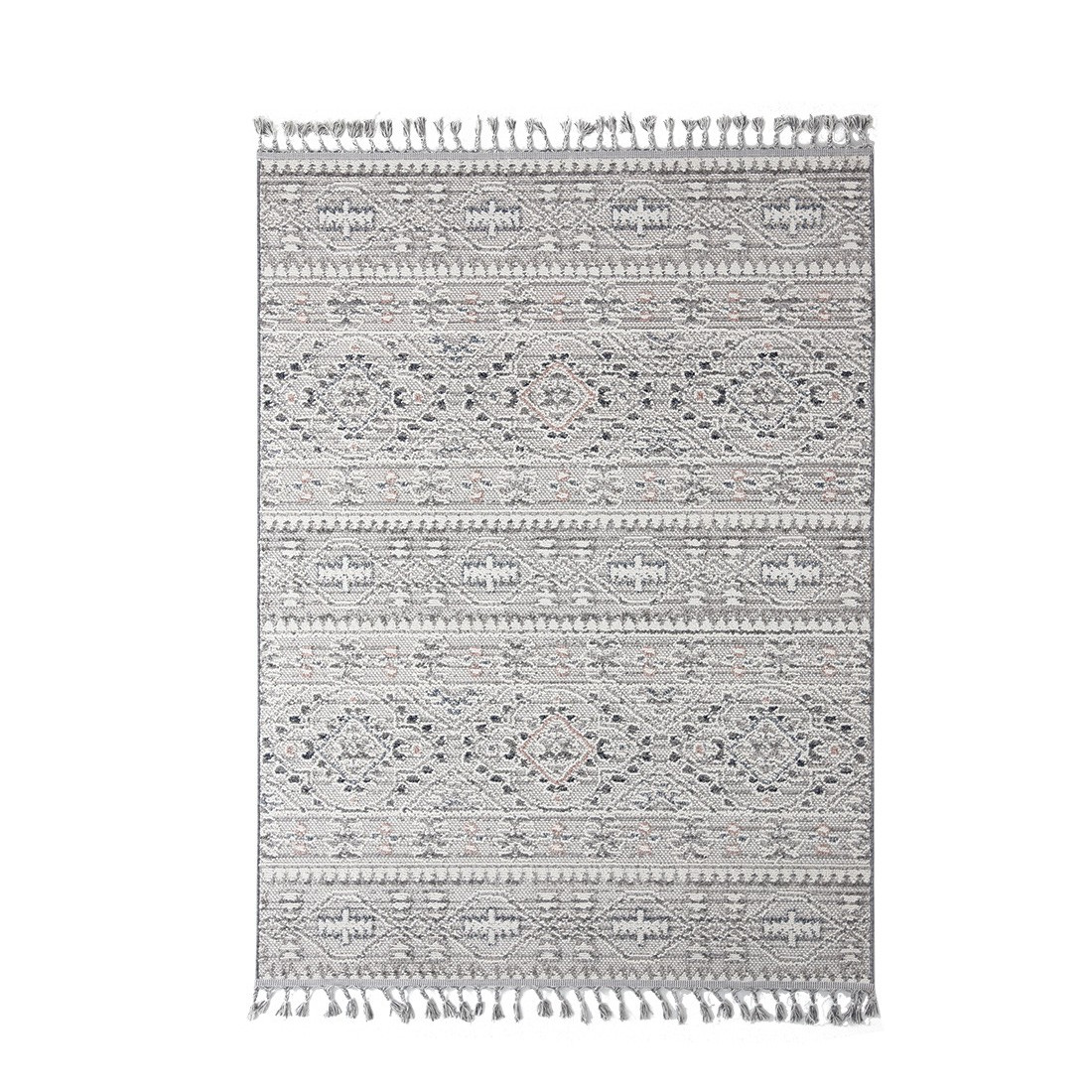 Η όμορφη και σύγχρονη τάση του boho σχεδιασμένη με γεωμετρικά σχήματα και ιδιαίτερο χαρακτηριστικό το ελαφρύ - μικρό ύψος πέλους, καθώς και τα σκουρόχρωμα κρόσσια. Ιδανικό για μίνιμαλ - νεανική διακόσμηση και απόλυτα ταιριαστό τόσο σε σαλόνια, όσο και σε βοηθητκούς χώρους λόγω της πρακτικότητάς του.