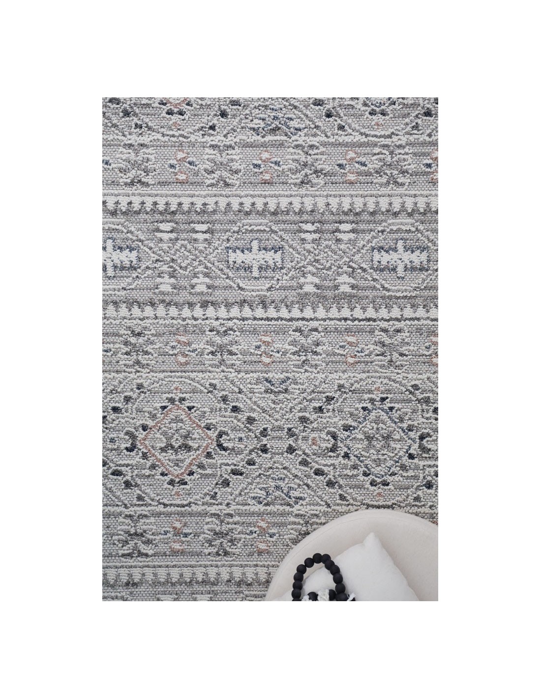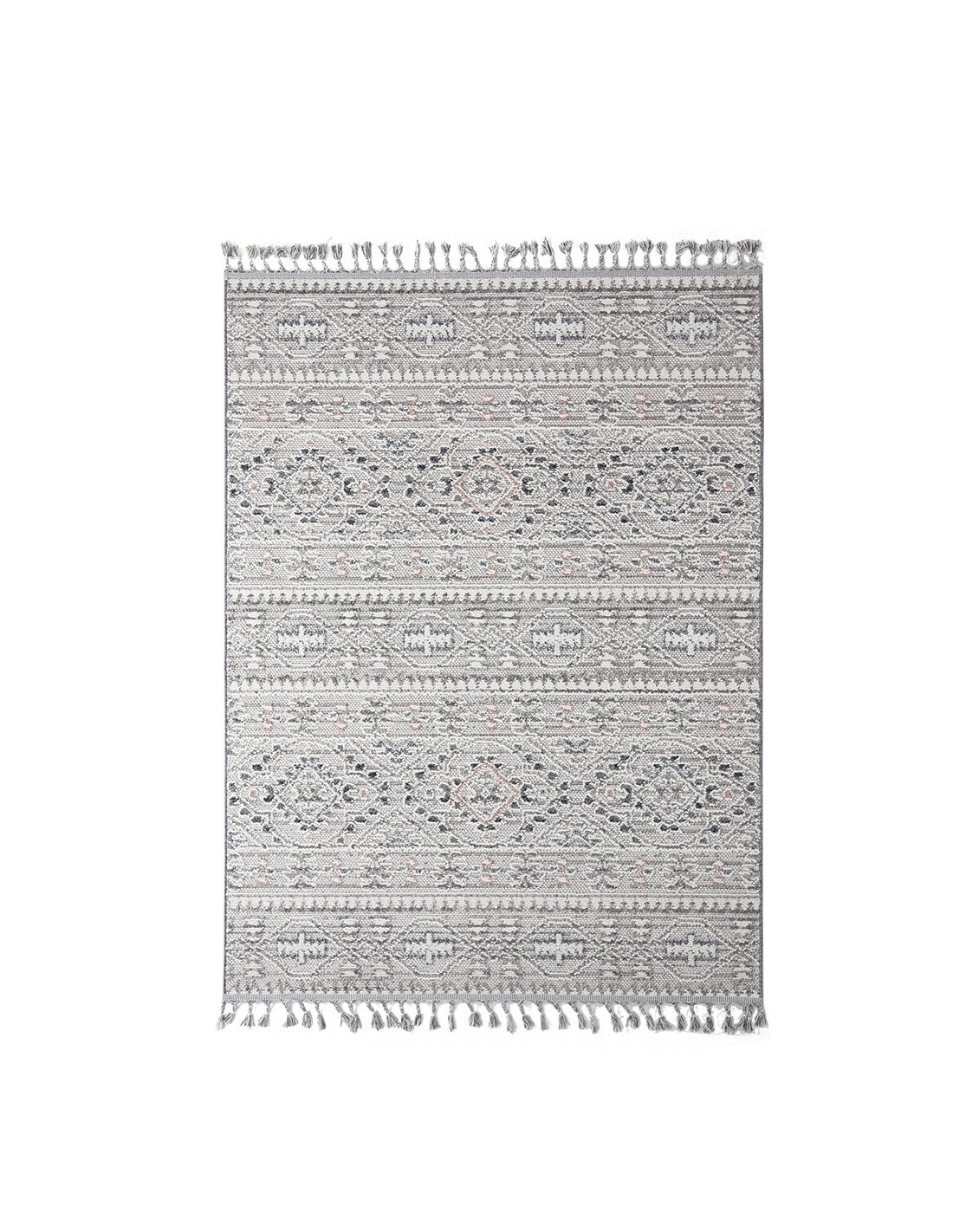 Η όμορφη και σύγχρονη τάση του boho σχεδιασμένη με γεωμετρικά σχήματα και ιδιαίτερο χαρακτηριστικό το ελαφρύ - μικρό ύψος πέλους, καθώς και τα σκουρόχρωμα κρόσσια. Ιδανικό για μίνιμαλ - νεανική διακόσμηση και απόλυτα ταιριαστό τόσο σε σαλόνια, όσο και σε βοηθητκούς χώρους λόγω της πρακτικότητάς του.
