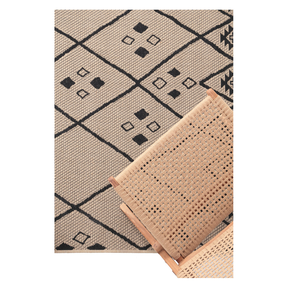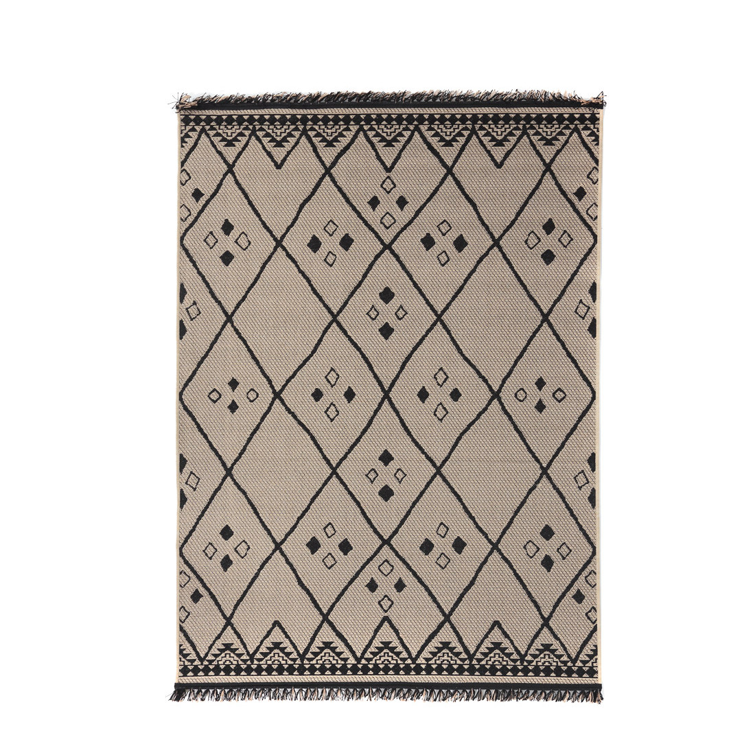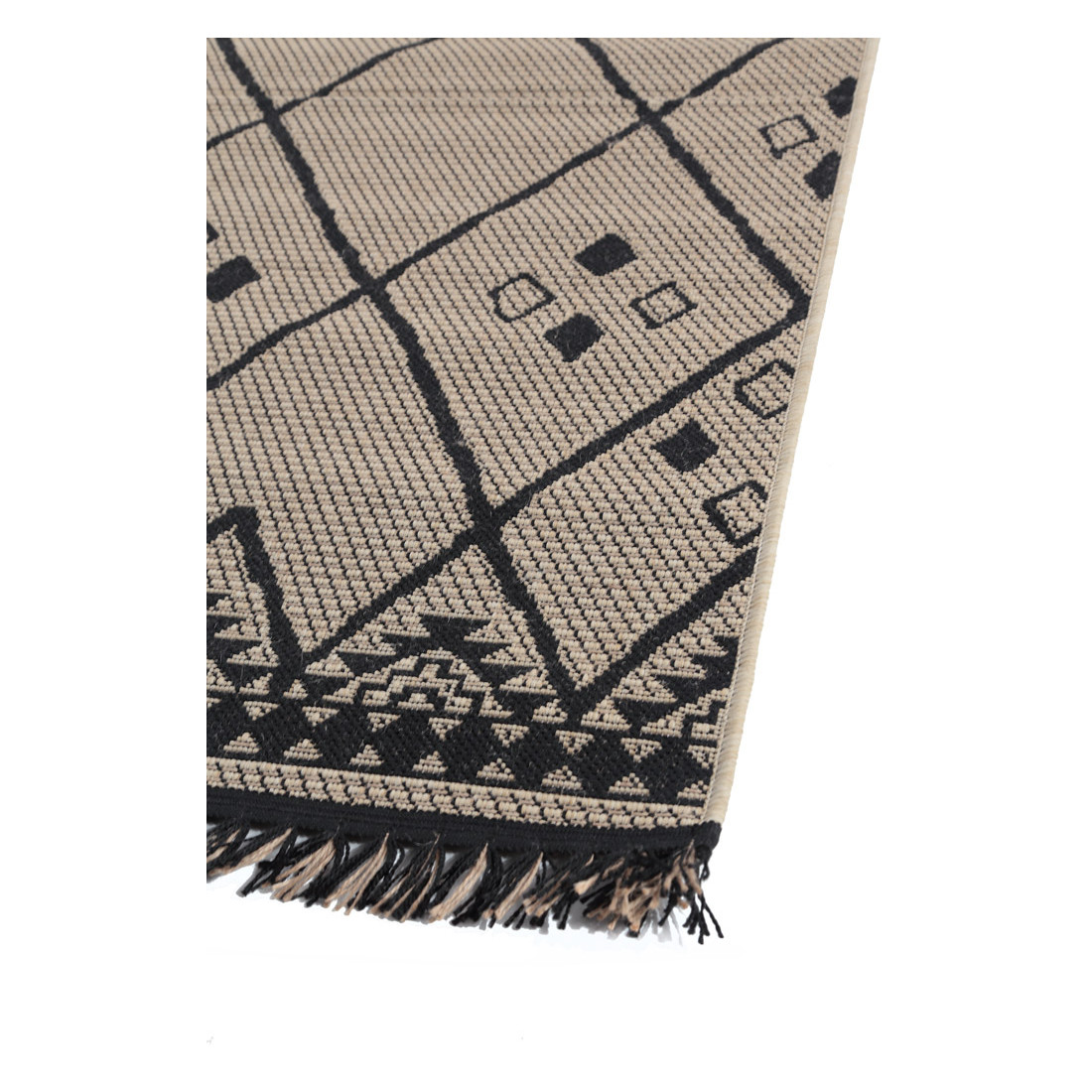 Ψάθα σε boho αισθητική και σχέδια φτιαγμένη από μηχανοποίητη γιούτα. Τα χρώματα που διακρίνονται στο σχέδιο και στο κρόσσι είναι μαύρο και μπεζ σε όλη τη συλλογή. Ελαφριά, εύκολη στο καθάρισμα και πολύ πρακτική για όλους τους χώρους.