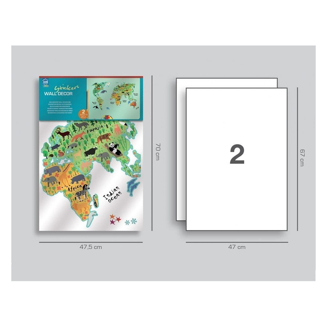 Ο κόσμος - world map - είναι το τέλειο αυτοκόλλητο τοίχου για διακόσμηση.  Καλωσορίστε τα παιδιά σας σε ένα δωμάτιο με χρώματα και σχέδια κατάλληλα για την ηλικία του. Προσαρμόστε τις διακοσμήσεις των τοίχων σας, τις πόρτες και τα έπιπλα σε ελάχιστο χρόνο αποτελεσματικά και οικονομικά, προσθέτοντας ένα διασκεδαστικό χαρακτήρα σε κάθε παιδικό δωμάτιο. Τοποθετούνται εύκολα δίδοντας μια προσωπική “πινελιά” στο δωμάτιο του παιδιού σας. Τα World Map διακοσμητικά αυτοκόλλητα τοίχου XL επανατοποθετούνται εύκολα και γρήγορα χωρίς ζημιές στο τοίχο ή το αυτοκόλλητο.