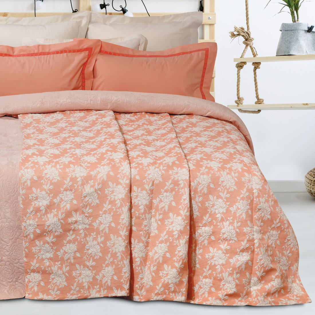 Κουβέρτα καλοκαιρινή jacquard ύφανσης από 85% βαμβάκι-15% πολυέστερ, σε μοντέρνα χρώματα. Ιδιαίτερα απαλή, μαλακή και ανθεκτική στη χρήση