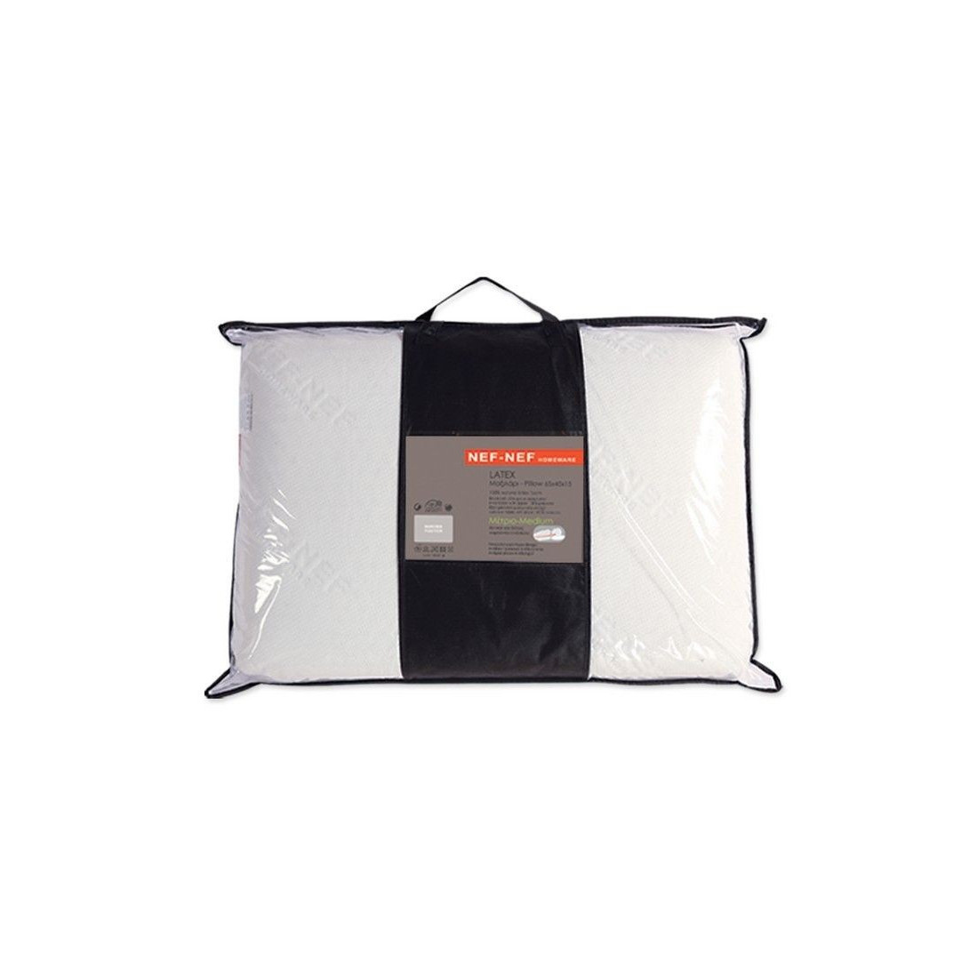 Μαξιλάρι ύπνου Latex ορθοπεδικό μέτριο Nef-Nef 65x45. Εύκαμπτο, ορθοπεδικό μαξιλάρι από φυσικό καουτσούκ που προσφέρει στήριξη του αυχένα και άνεση στον ύπνο. Ένα αντιαλλεργικό και αντιβακτηριακό μαξιλάρι, εξαιρετικά ανθεκτικό και αναπνεόμενο χάρη στις ομοιόμορφες ανοιχτές κυψέλες. Διαθέτει διπλό κάλυμα με φερμουάρ για να αφαιρείται και να πλένεται.