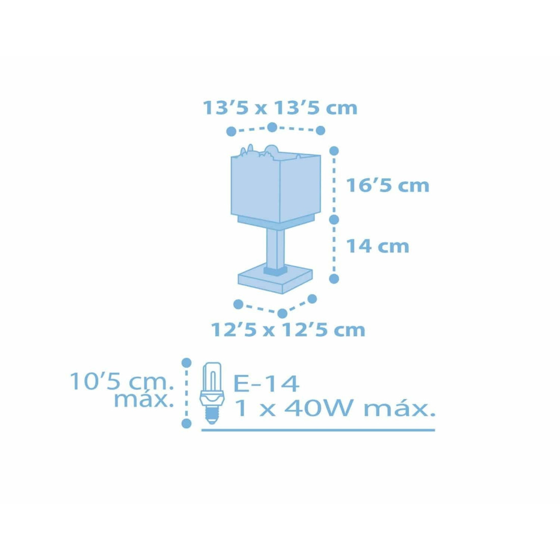 Κλασικής σχεδίασης παιδικό φωτιστικό κομοδίνου της εταιρείας Ango σε γαλάζιο χρώμα με σχέδιο ζωάκια. Παρέχει ομοιόμορφο, συμπληρωματικό φωτισμό. Απόλυτα ασφαλές ώστε τα παιδιά να μπορούν να μελετήσουν, να παίξουν και να κοιμηθούν. Ανθεκτικό στα χτυπήματα και τις πτώσεις. Υψηλής ποιότητας συνθετικό υλικό αντοχής (πολυπροπυλένιο, συνθετικά & πλαστικά μέρη). Διακόπτης on / off επάνω στο καλώδιο. Διπλού τοιχώματος (διάφανο εξωτερικό τοίχωμα). Ανεξίτηλη εκτύπωση και κοπή τοιχωμάτων σε διάφανο υλικό. Φωσφορίζοντα μέρη στο σκοτάδι στο εξωτερικό τοίχωμα. Ιδανικό για γραφείο ή κομοδίνο. Κατάλληλο και για διάβασμα. Τύπος ντουί: 1 Χ E14 με θέση για έναν λαμπτήρα οικονομίας ισχύος έως 23W ή Led(δεν συμπεριλαμβάνεται). Τροφοδοσία ρεύματος 220V–240V. Κατασκευασμένο εξ ολοκλήρου στην Ευρώπη. Ασφάλεια με πιστοποιήσεις στους κανόνες ασφαλείας της ΕΕ. Ενεργειακής κλάσης Α++. Το Baby Bunny Somon φωτιστικό κομοδίνου συμπληρώνει τα υπόλοιπα παιδικά φωτιστικά της συλλογής.