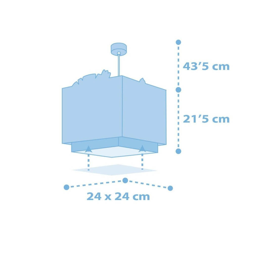 Παιδικό φωτιστικό οροφής της εταιρείας Ango σε γαλάζιο χρώμα με σχέδιο ζωάκια. Είναι σχεδιασμένο για γενικό φωτισμό που παρέχει ομοιόμορφο και άπλετο φωτισμό. Έχει φωσφορίζοντα μέρη στο σκοτάδι. Απόλυτα ασφαλές ώστε τα παιδιά να μπορούν να μελετήσουν, να παίξουν και να κοιμηθούν. Συνθετικό υλικό αντοχής (πολυπροπυλένιο, συνθετικά / πλαστικά μέρη). Διπλού τοιχώματος με διάφανο το εξωτερικό του για μέγιστη φωτεινότητα. Κιτ ανάρτησης ρυθμιζόμενο έως 60εκ. ύψος κατά την εγκατάσταση (συμπεριλαμβάνεται). Διακοσμημένη ροζέτα κάλυψης σημείων σύνδεσης & στήριξης. Ανεξίτηλη εκτύπωση σε διάφανο υλικό που προσδίδει δισδιάστατο αποτέλεσμα. Παρέχεται διαχυτής φωτός για ομοιόμορφο φωτισμό. Ιδανικό για γενικό φωτισμό. Τύπος ντουί: 1 Χ E27 με θέση για έναν λαμπτήρα οικονομίας ισχύος έως 23W ή Led(δεν συμπεριλαμβάνεται). Τροφοδοσία ρεύματος 220V–240V. Κατασκευασμένο εξ ολοκλήρου στην Ευρώπη. Ασφάλεια με πιστοποιήσεις στους κανόνες ασφαλείας της ΕΕ. Ενεργειακής κλάσης Α++. Το Baby Jungle Blue φωτιστικό οροφής συμπληρώνει τα υπόλοιπα παιδικά φωτιστικά της συλλογής και είναι εξαιρετικά εύκολο στην εγκατάστασή του.