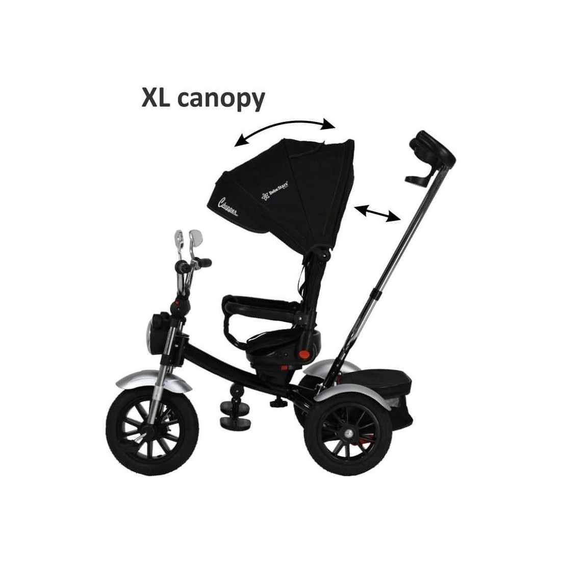 Το ποδήλατο Chopper Black 6 in 1 της Bebe Stars έχει σχεδιαστεί για μωρά από 9 μηνών και παρέχει ομαλή μετάβαση από τη λειτουργία του καροτσιού σε αυτή του ποδηλάτου.