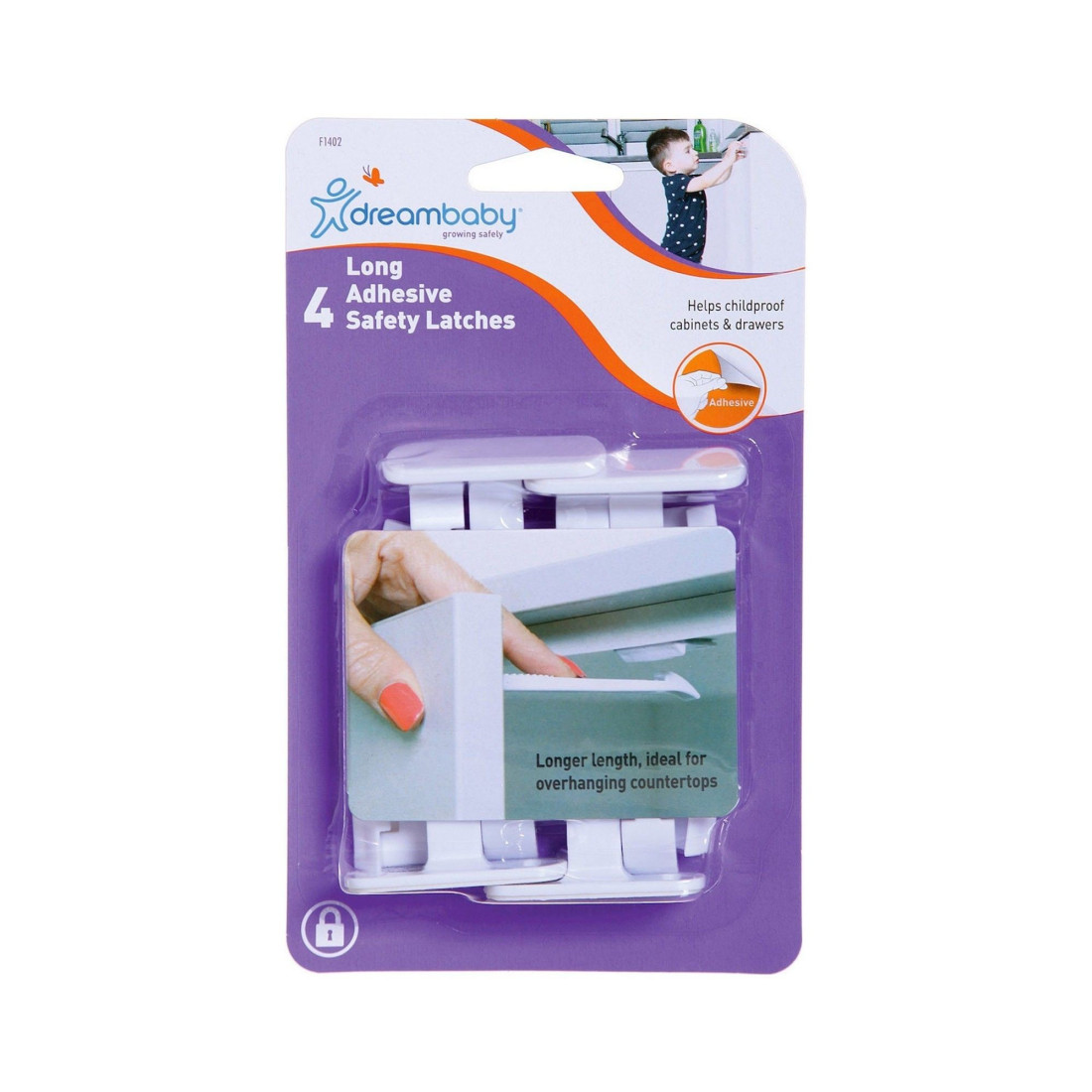 Ασφάλειες ντουλαπιών σετ 4 τεμαχίων από την εταιρεία Dream Baby για την μέγιστη προστασία του μωρού σας. Ιδανικά για την ασφάλιση των περισσότερων ντουλαπιών και συρταριών. Είναι κατάλληλες για τοποθέτηση εσωτερικά στην κορυφή ή την πλευρά του ντουλαπιού. Επιπλέον μπορούν να τοποθετηθούν στο κορυφαίο συρτάρι ή σε ενδιάμεσα συρτάρια που έχουν διαχωριστικά , πάνω στα οποία μπορεί να εφαρμοστεί. Φέρει αυτοκόλλητες ταινίες για εύκολη τοποθέτηση σε κάθε είδους επιφάνεια, όπως ξύλινη, γυάλινη, μεταλλική κλπ. Δεν απαιτούνται εργαλεία ή βίδες.