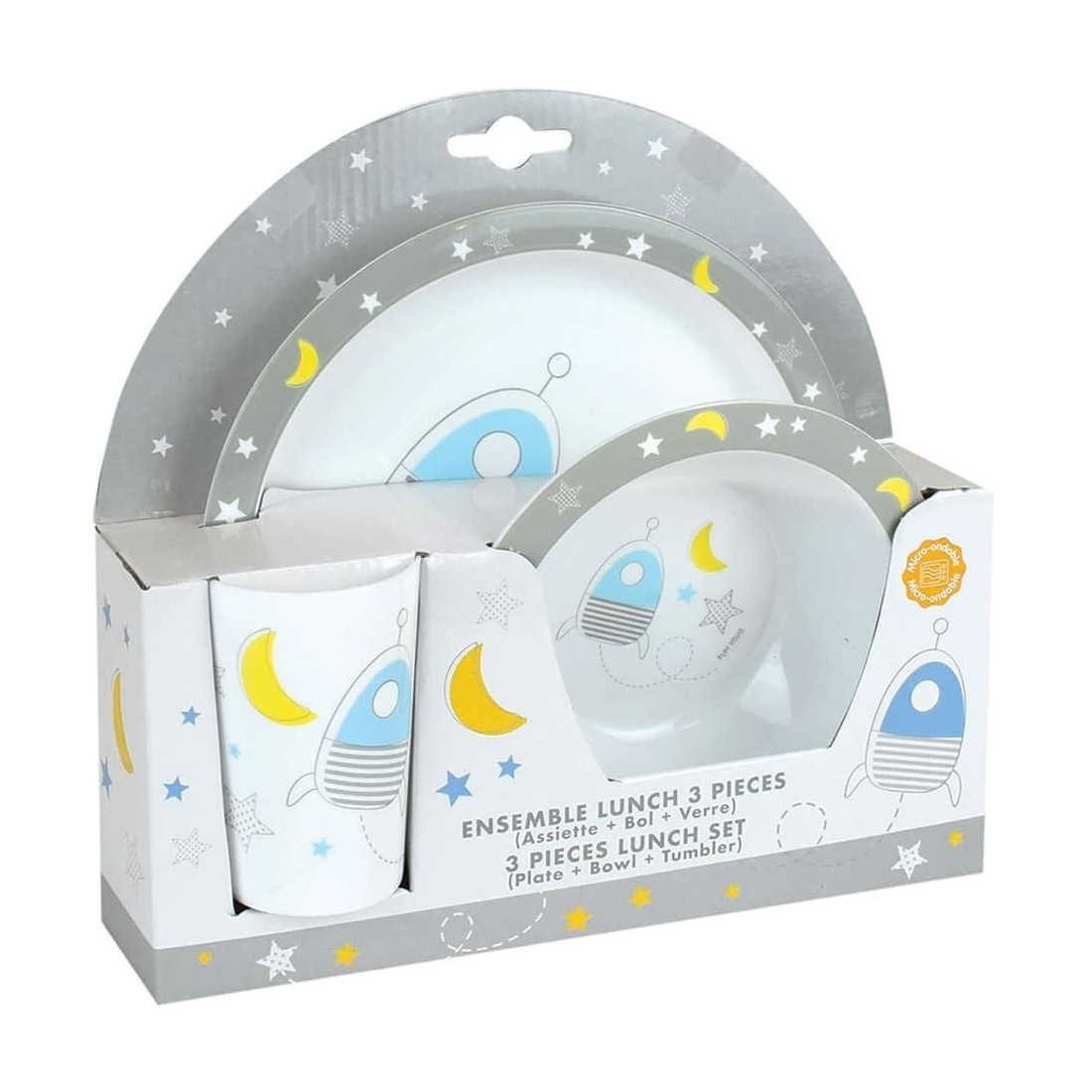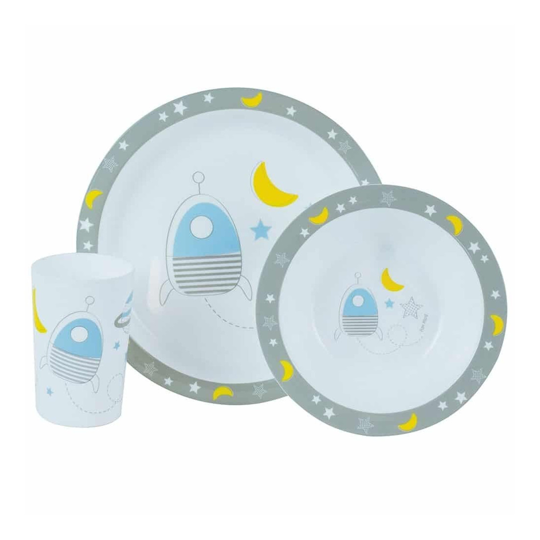 Διαστάσεις: 1 Σετ: 1 Πιάτο: Διάμετρος: 22 cm, Ύψος: 2 cm & 1 Μπωλ: Διάμετρος: 16 cm, Ύψος: 4 cm & 1 Ποτήρι: Χωρητικότητα: 220 ml, Ύψος: 10 cm