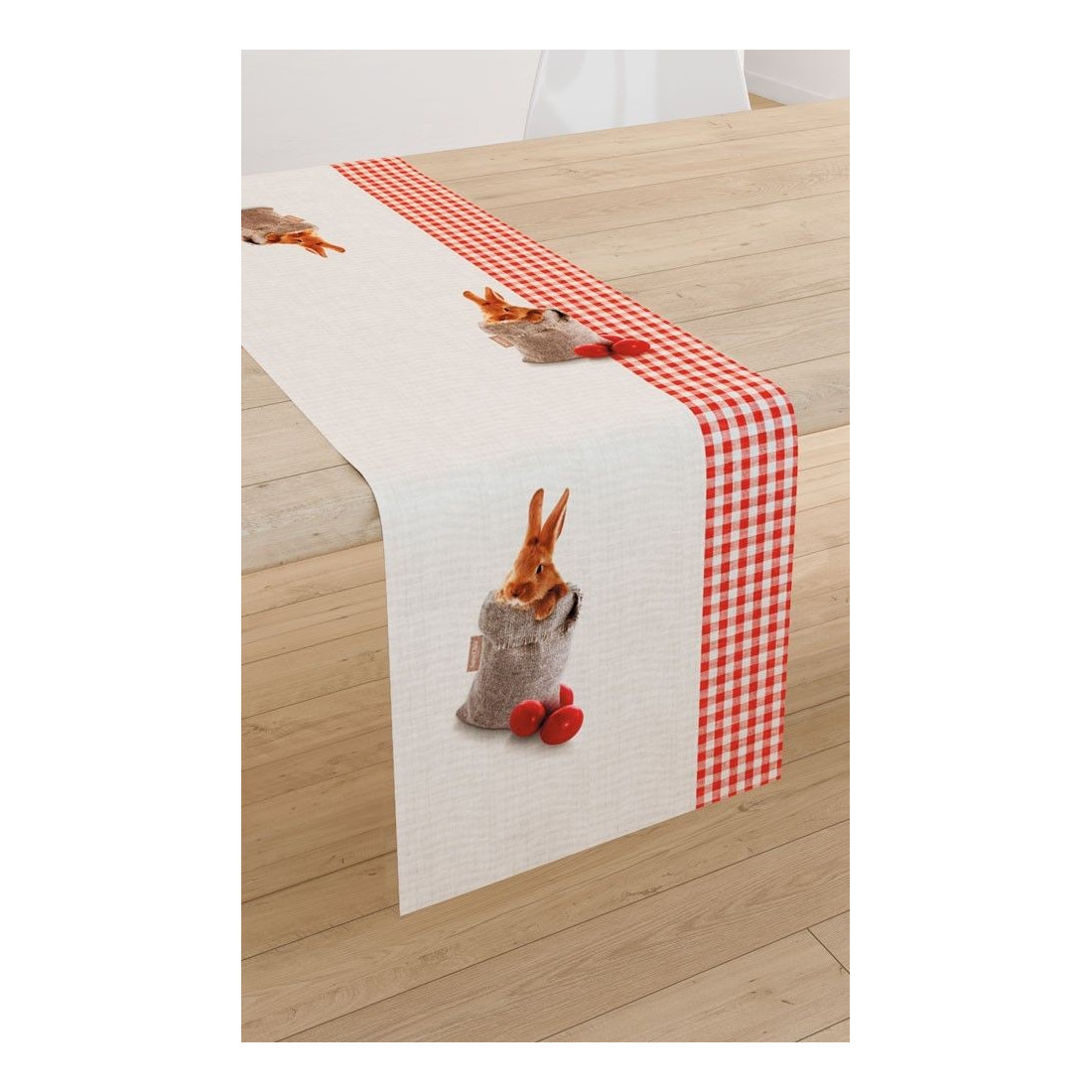 Runner Easter 04 της Saint Clair, διακοσμημένο με αυγουλάκια και ένα λαγουδάκι.