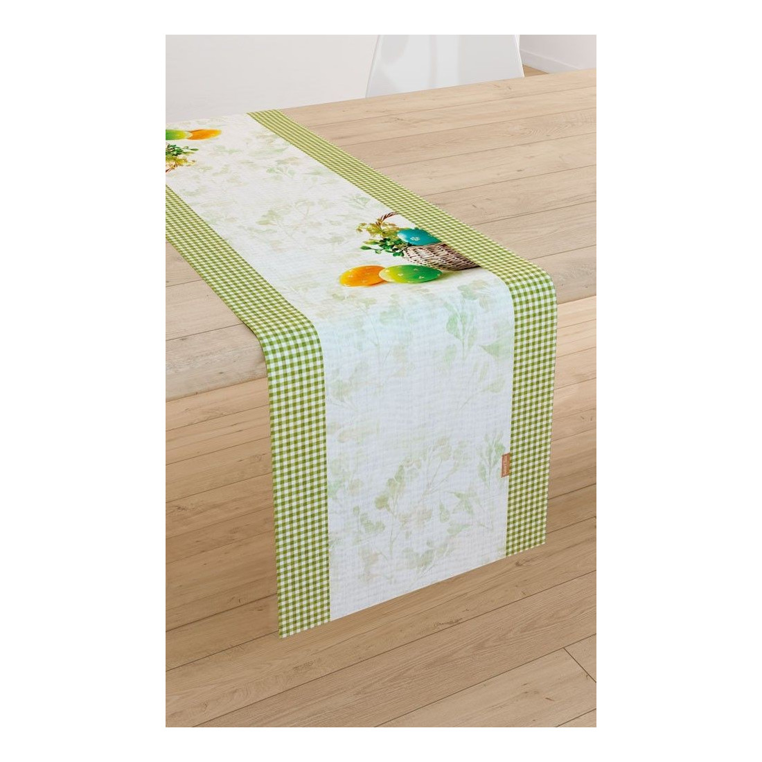 Runner Easter 08 της Saint Clair, διακοσμημένο με αυγουλάκια και ένα πασχαλινό καλάθι.