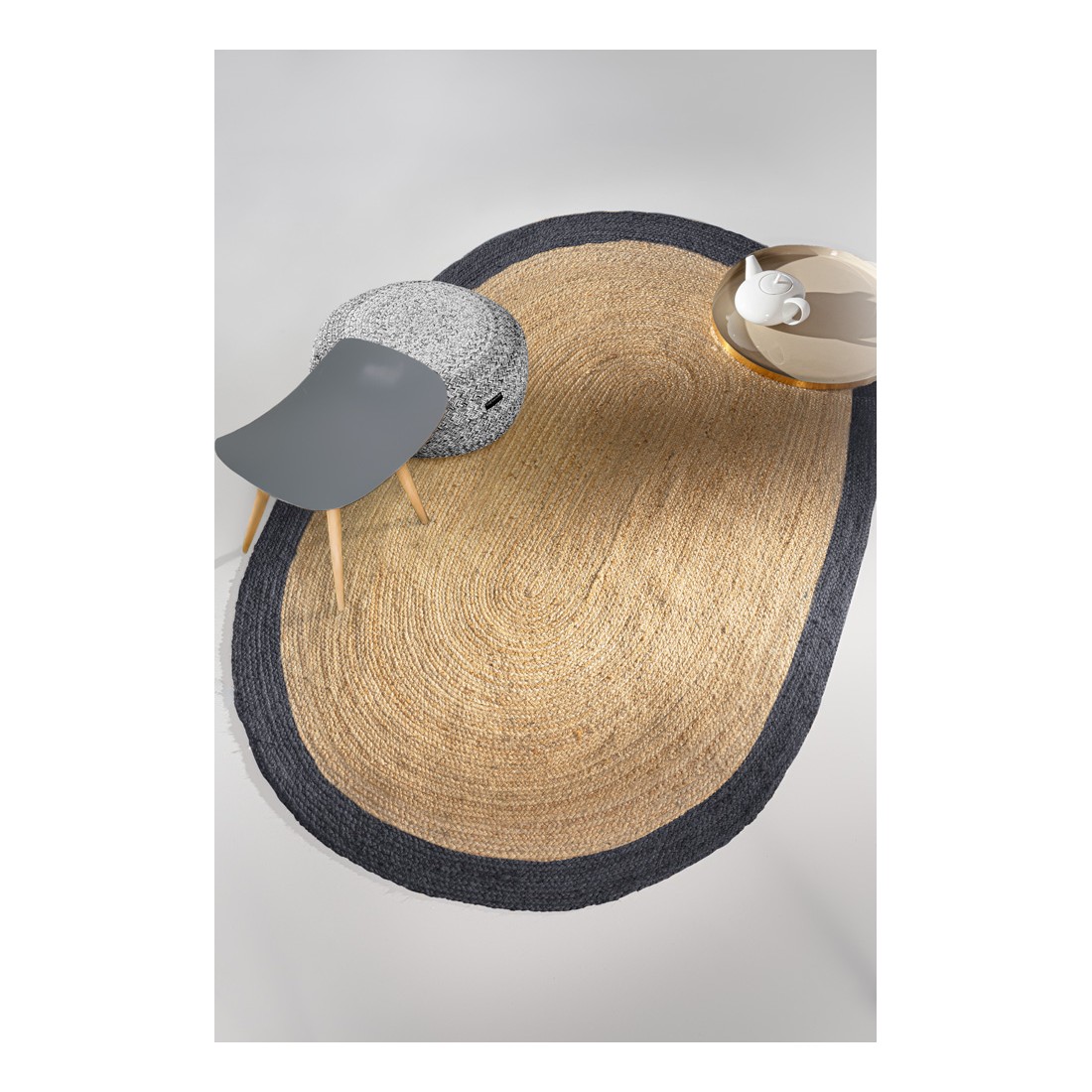 Χαλί σαλονιού σε οβάλ σχήμα με διχρωμία περιμετρικά για όλες τις εποχές του χρόνου κατασκευασμένο από 100% jute με την υπογραφή του γαλλικού οίκου Guy Laroche Paris. Διάσταση 140x210εκ.