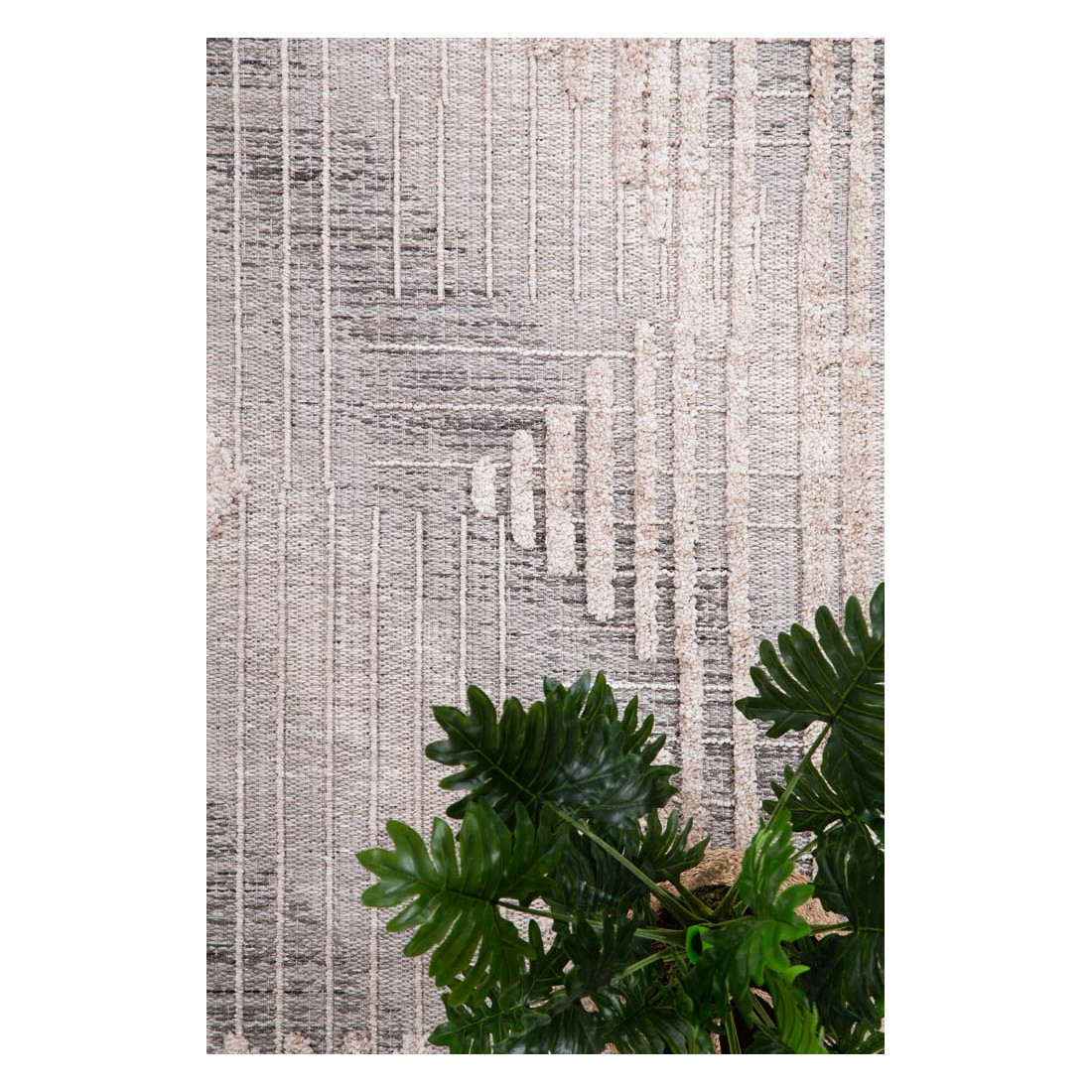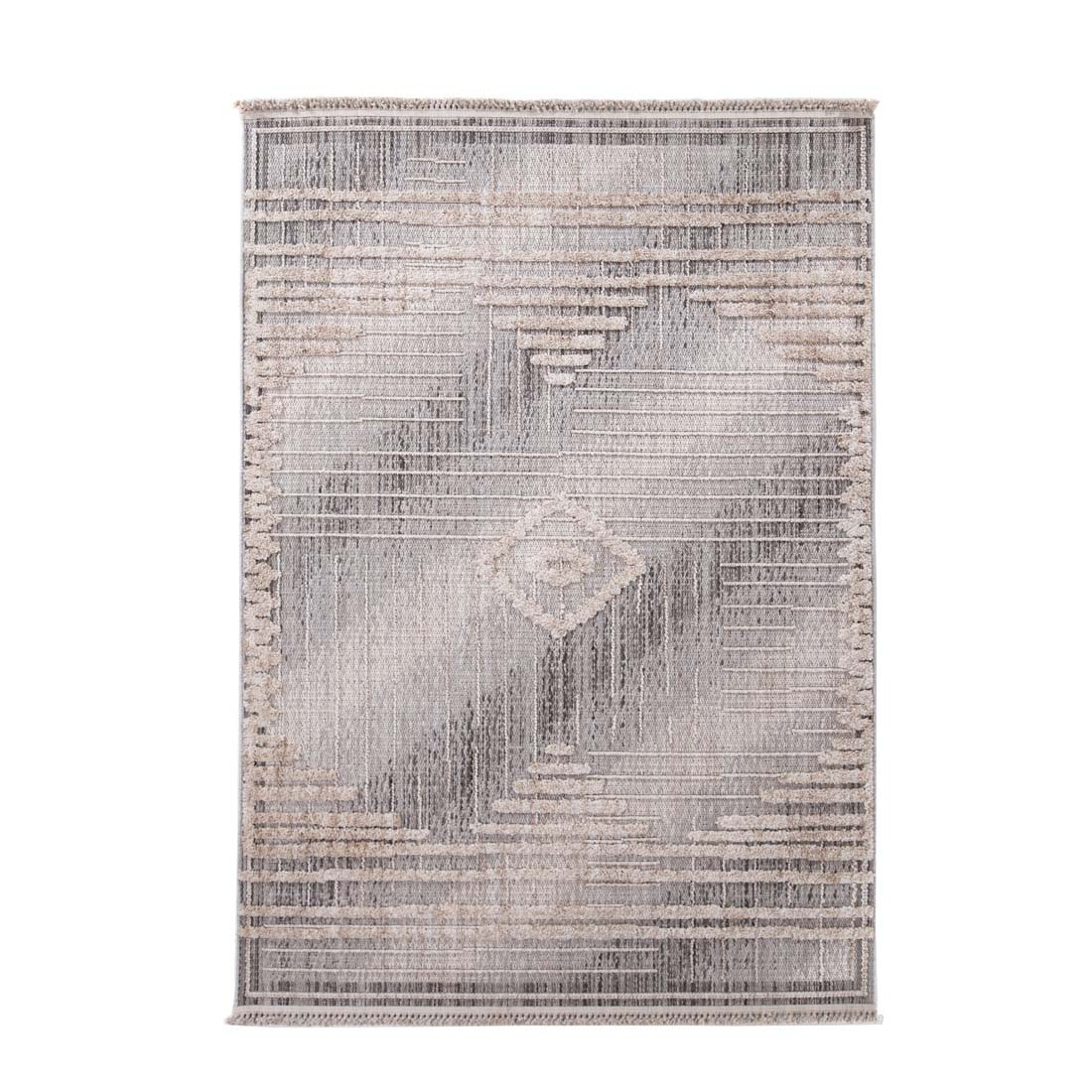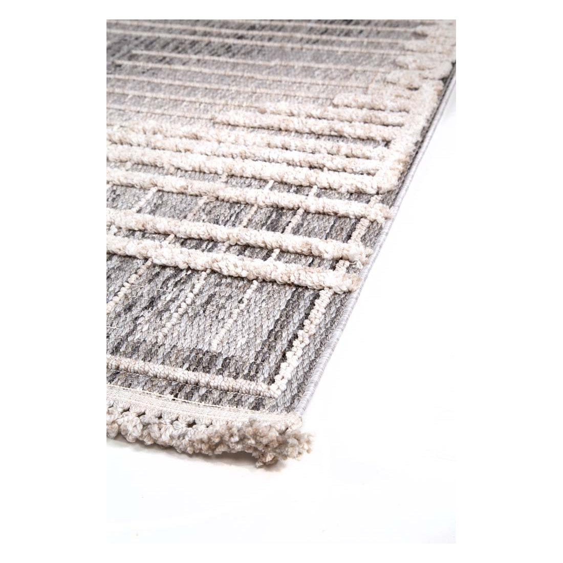 Μοντέρνα ανάγλυφα χαλιά τριών επιπέδων με ιδιαίτερη γυαλάδα στην επιφάνεια και μοναδικό κρόσσι. Σε λευκούς, ασημί και γκρι χρωματισμούς προσδίδει ιδιαίτερη ανανέωση στο χώρο σας και αποτελεί ξεχωριστή πρόταση τόσο για το σαλόνι καθώς για την κρεβατοκάμαρά σας.
