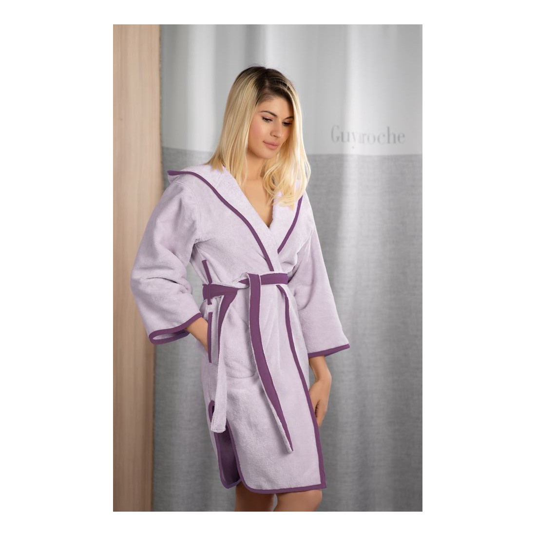 Γυναικείο μπουρνούζι New Comfy από τη Guy Laroche Paris. Ένα ξεχωριστό μπουρνούζι με πλαϊνές τσέπες και άνοιγμα για απόλυτη ελευθερία κινήσεων. Συνδυάστε με τις αντίστοιχες πετσέτες της ίδιας σειράς.