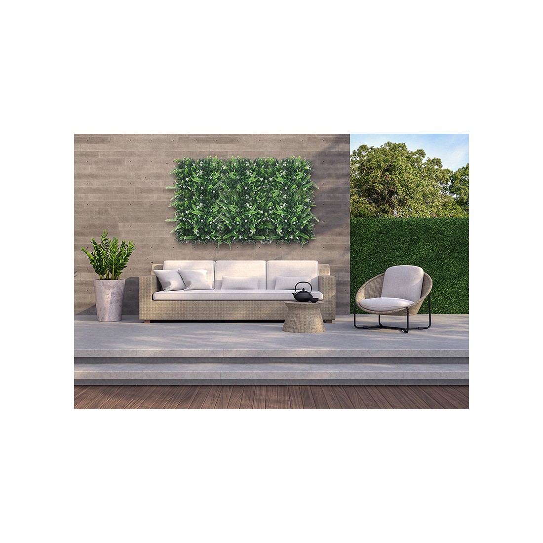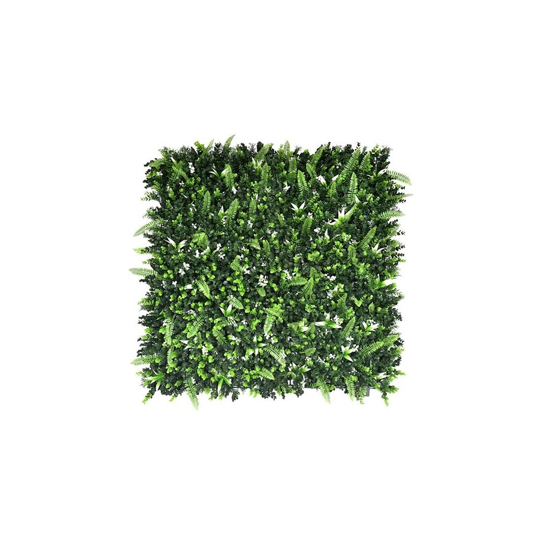 Συνθετικό διακοσμητικό πάνελ με πυκνή φυλλωσιά, σε πλακίδιο 1m x 1m. Έχει τρισδιάστατη όψη και δίνει μια αίσθηση ζωντάνιας και φυσικότητας στον χώρο σας. Διακοσμήστε τον εξωτερικό ή εσωτερικό χώρο σας με τα πάνελ φυλλωσιάς και δημιουργήστε έναν μοναδικό κάθετο κήπο.