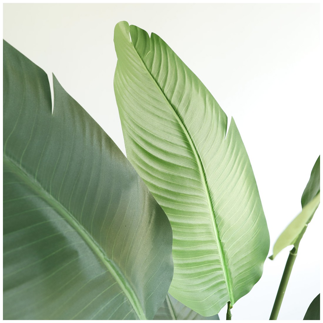 Η τεχνητή μπανανιά της ποικιλίας Ravenala Μαδαγασκάρης με τα πυκνά και πλούσια πράσινα φύλλα της, θα δώσει μια αίσθηση τροπικού κλίματος στον χώρο που θα επιλέξετε να την τοποθετήσετε.